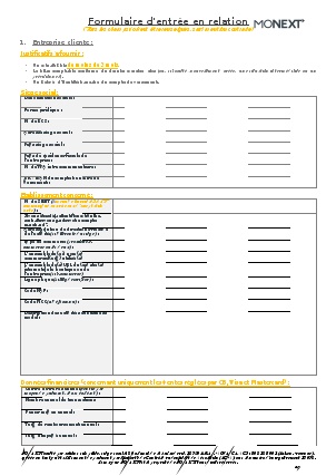 Formulaire d'entrée en relation (Société commerciale étrangère) :