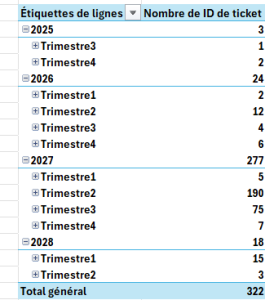 - Date de création du ticket" (colonne O) ou "Date Renouvellement (colonne I)