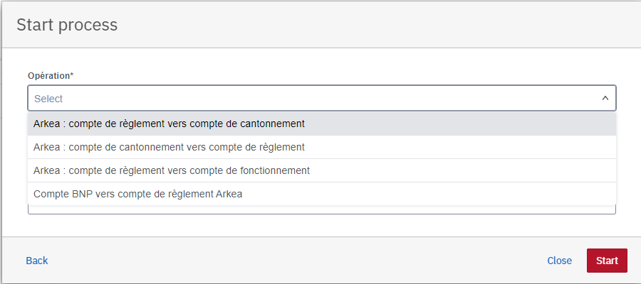 Cette vacation permet de créer et d'envoyer un fichier d'ordre de virement pour mouvementer les 4 comptes Monext (BNP et les 3 comptes Arkea règlement, cantonnement et fonctionnement)