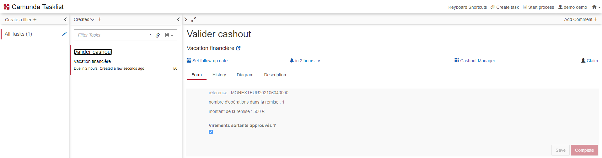| Tâche utilisateur: formulaire à remplir | Tâche susceptible d'interrompre en erreur le workflow | ||