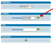 S'assurer que la fédération soit 'MONEXT' et saisir le N° de structure : 028200.
