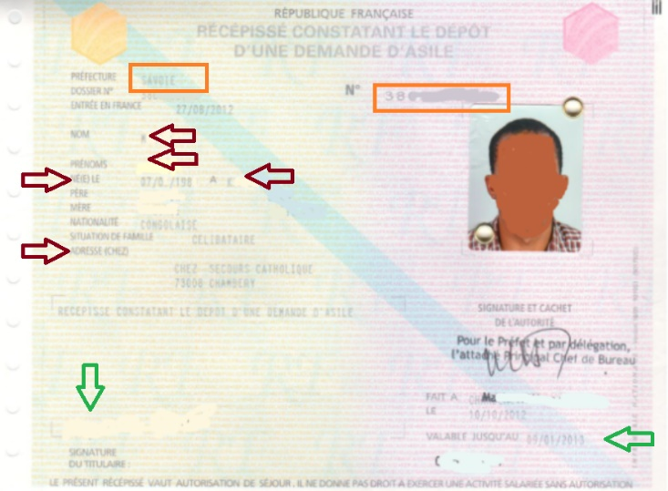 • Document de demande d'asile remis par une préfecture. (1.1.6)