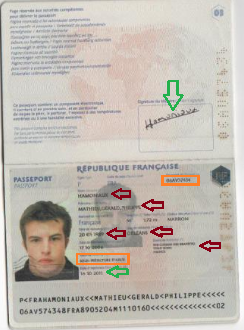 S'assurer également que le justificatif d'identité transmis est en cours de validité et que la signature n'est pas trop différente de celle du signataire du contrat (Flèches vertes)