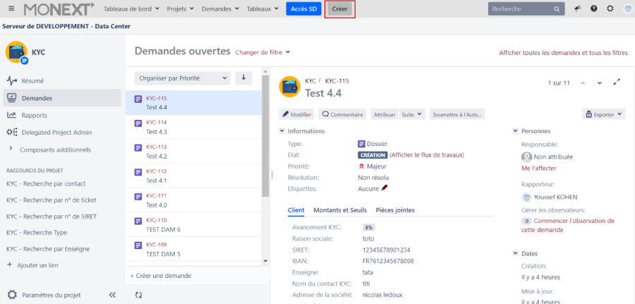 • Se rendre sur le lien suivant : https://online.monext.fr/projects/KYC/summary pour accéder à l'outil JIRA.