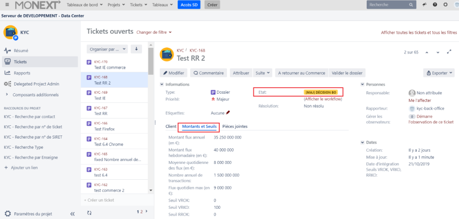 - Se rendre sur le lien suivant : https://online.monext.fr/projects/KYC/summary pour accéder à l'outil JIRA.