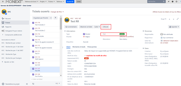 • Sélectionner le ticket à clôturer. Celui-ci se trouve à l’état "REFUS".