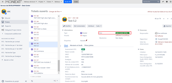 Le statut du ticket devient « [MAJ] SAISIE REFERENTIEL ». Celui-ci est attribué au Back-Office qui se chargera de reporter la modification sur le référentiel en production.
