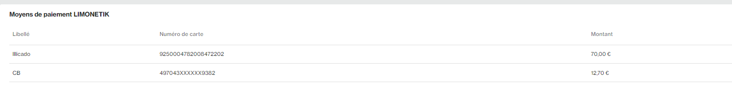 Vu avec Fred M, le 24/06/22, seul le client EP GUY DEMARLE, possède le moyen de paiement ILLICADO. Le Moyen de paiement illicado est processé par LIMONETIK, LIMONETIK est un client Monext.