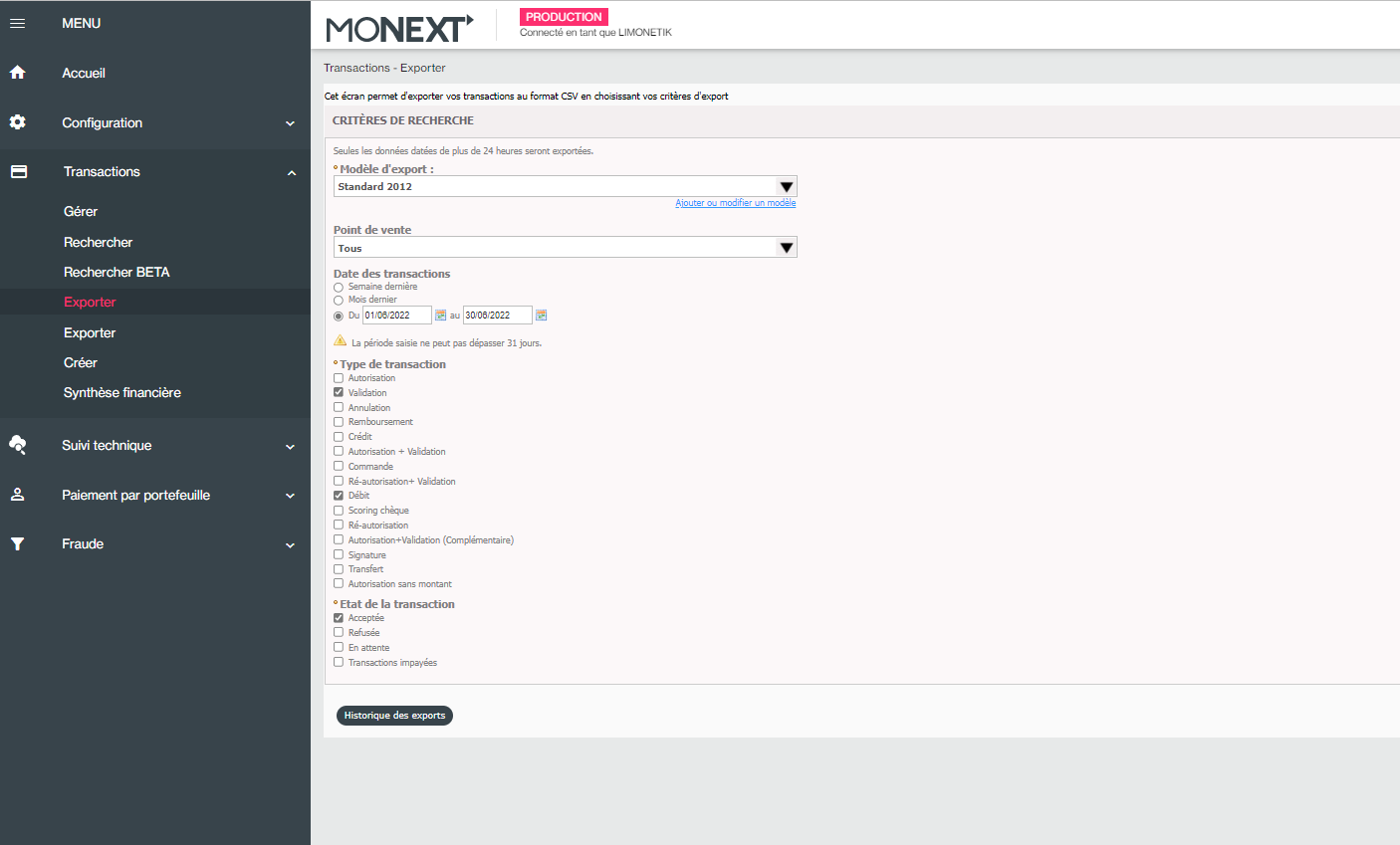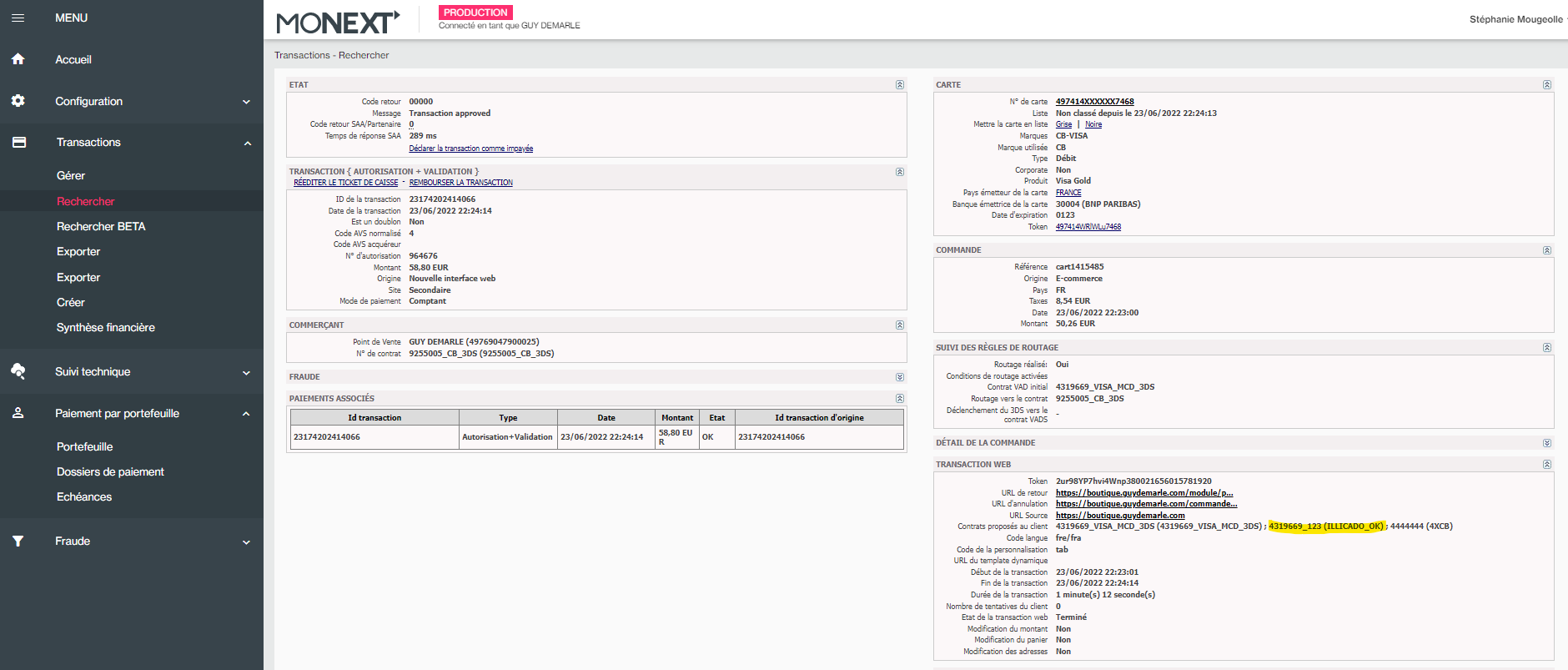 - Extraction payline des transactions CB validées sur le CONTRAT ILLICADO detenu par GUY DEMARLE et processées par LIMONETIK