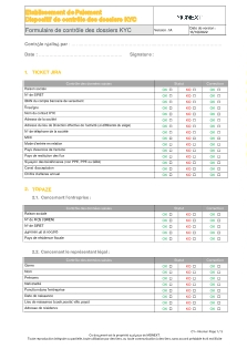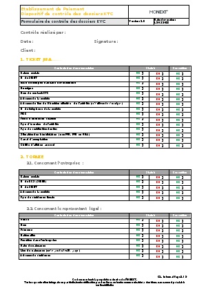 Il s'effectue au moyen du Formulaire de contrôle des dossiers KYC (ci-dessous), sur lequel la personne en charge du contrôle signale si les éléments contrôlés sont OK ou KO au moyens des cases à cocher prévues à cet effet.